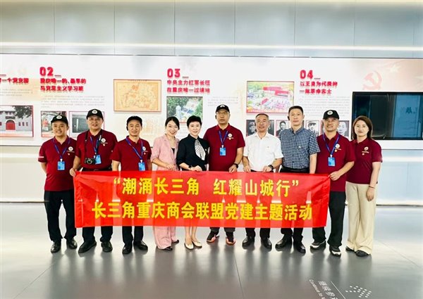 为延续红色血脉,汲取奋进力量,深化长三角区域与重庆本土的交流合作,2025年8月13日,在重庆市政府驻上海办事处的指导与支持下,江苏省重庆商会作为长三角重庆商会联盟轮值主席团,联合重庆市綦江高新技术产业开发区管理委员会,共同举办了主题为“潮涌长三角 红耀山城行”的党建共建活动。联盟党员代表一行走进綦江规划展览馆,接受沉浸式红色教育,追寻革命足迹,传承红色基因。